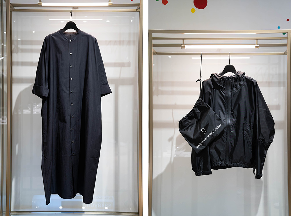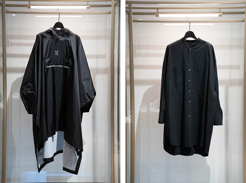 ใน " g.sakayori" โดยแสวงหาการออกแบบที่ขั้นพื้นฐานที่วัตถุดิบฟังก์ชันที่พัฒนาแบบเป็นเอกลักษณ์ สิ่งของที่เป็น unisex ของทรวดทรงครั้งใหญ่เป็นความอุดมสมบูรณ์ เสื้อที่ถอดออกทางศรีษะที่รอยกรีดยาวของปุ่มการขว้างลูกด้วยกำลังข้อมือถูกให้ในด้านข้างทั้งสองเลือกผ้าที่ทำการตัดขาดซักเสื้อผ้ายากมาใช้ ซักเสื้อแจ๊คเก็ต tailored ได้ที่บ้านด้วย 1 ใบอ่อนพริ้วที่กลายเป็น no sleeve ถ้าเอาปุ่มการขว้างลูกด้วยกำลังข้อมือของแขนเสื้อออก blouson และ poncho water repellency ซึ่งกันน้ำได้และเสื้อโค้ท Mods ที่ยอดเยี่ยมในความแห้งเร็วเป็นทรัพย์สมบัติที่สำคัญที่กลางแจ้งด้วย