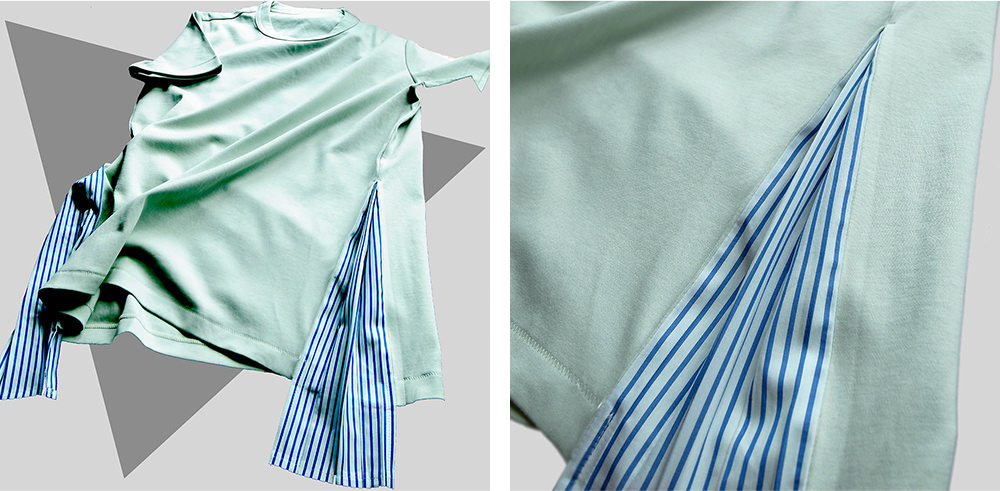 ที่ " Re⇆STOCK" ที่ทำการซ่อมและความเคยชินเช่นเสื้อผ้าและรองเท้าเป็นต้น แนะนำรูปทรงอีกครั้งของเสื้อผ้าที่มีอยู่ในปัจจุบัน ในกรณีเสื้อเชิ้ตผู้ชาย เพิ่มสิ่งที่สอดเข้าไปของหลัง และทำ และเปลี่ยนได้เป็นทรวดทรงใหญ่ที่เดินตรงถึงร่างกายของผู้หญิง เพราะทำความยาวให้สั้น และใส่รอยกรีดยาวตัวอย่างเช่น นอกจากนั้นเย็บผ้าแยกอย่างเต็มที่ในด้านข้างทั้งสอง และเสื้อยืดที่ชอบที่ไม่ถูกใส่ด้วยการเปลี่ยนรูปร่างแล้วเกิดชีวิตใหม่ เพราะกาง width of a kimono ถ้าเลือกผ้าเสื้อเชิ้ตในฐานะผ้าแยก เพลิดเพลินกับสีหน้าใหม่ด้วยการผสม different fabrics ได้ด้วย