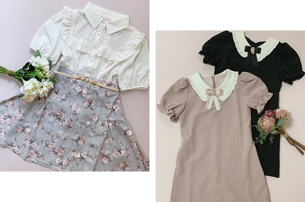 การวิ่งแข่งการเปลี่ยนปกเสื้อเสื้อครึ่งตัวของสตรี \ 4,900+tax floral design ปุ่ม SK \ 5,900+tax รูปหัวใจยางเข็มขัด \ 1,900+tax