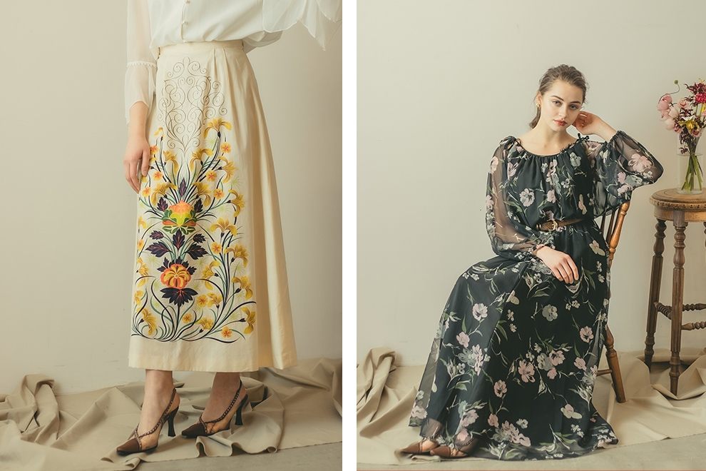 สมัยปี 70 ฮิปปี้กระโปรงแห่งภูมิภาคตะวันออกที่การเคลื่อนไหวเกี่ยวกับยาทำให้ประสาทหลอนตรงกลาง และปรากฎที่เขตเงินยูโร อย่างกับเอาบรรยากาศของยุคสมัยไปล่วงหน้า ถึงเราที่มีชีวิตอยู่ในญี่ปุ่นตอนนี้ดูบรรยากาศที่คล้ายซีกโลกตะวันออกที่ผู้คนที่อาศัยอยู่ที่ทวีปยุโรปในตอนนั้นจับ ก็กระตุ้น สิ่งหนึ่งจุดที่กระโปรงเหล้าองุ่นและชุดกระโปรงทั้งชุดของการใช้สีพบลายที่สร้างสรรค์ได้ "แค่ที่ GRIMOIRE จับอย่างเสรี และใส่ดูดีด้วยการตีความในแบบของตัวเอง และอยากให้กางความกว้างของเครื่องแต่งกายของฤดูใบไม้ผลินี้